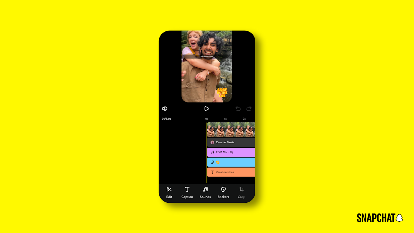 Also coming soon to US creators: a new, more intuitive way to edit videos directly on Snapchat. Timeline Editor enables creators to see their videos in a chronological format, making it easy to cut-and-paste segments. From there, layer on Lenses, music from the Sounds library, various creative tools, and more — perfect for putting together a standout Story or longer Spotlight video.